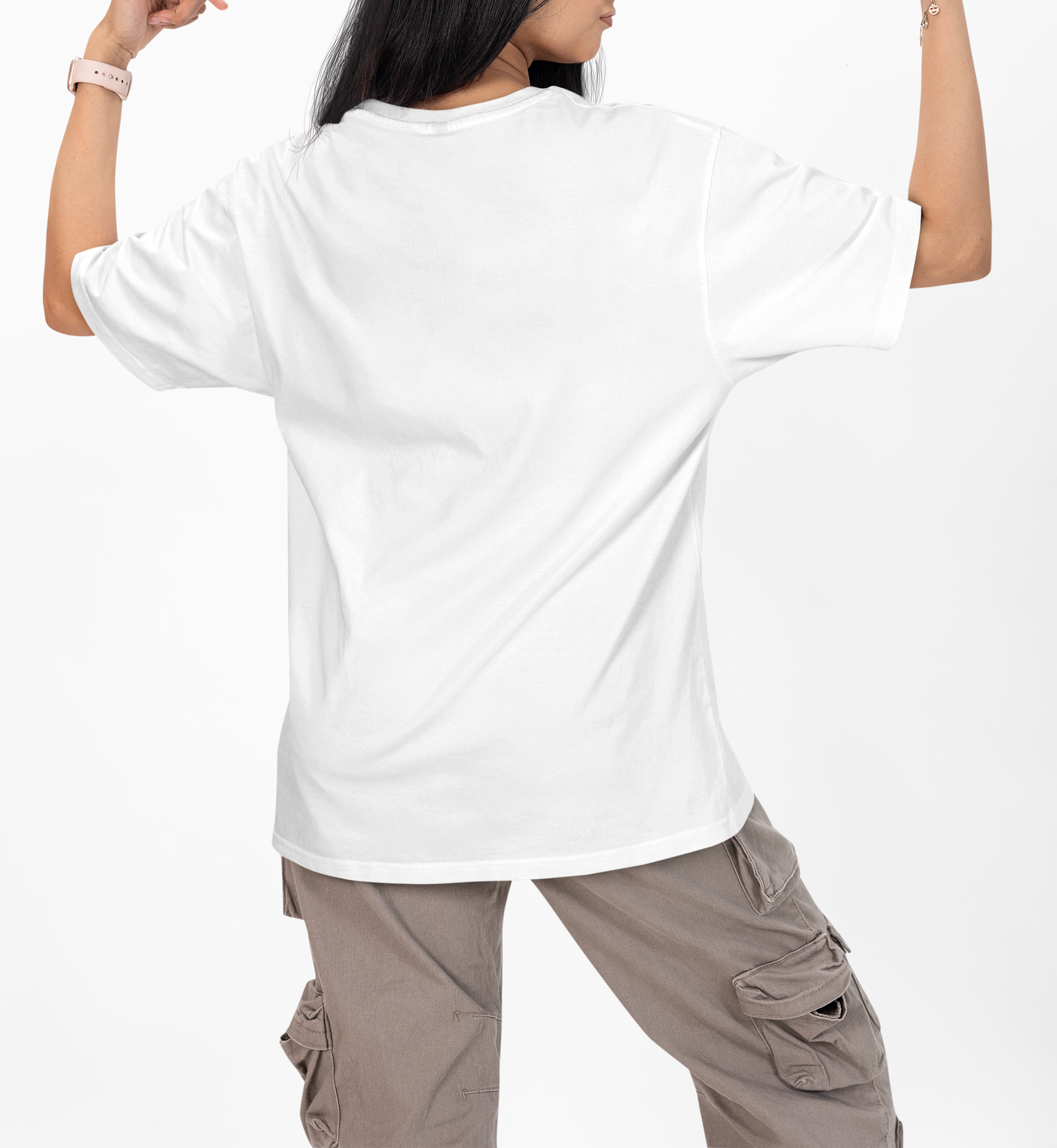 The “Be Present Not Perfect” white oversize T-shirt is designed for women who choose confidence over comparison and progress over perfection.
